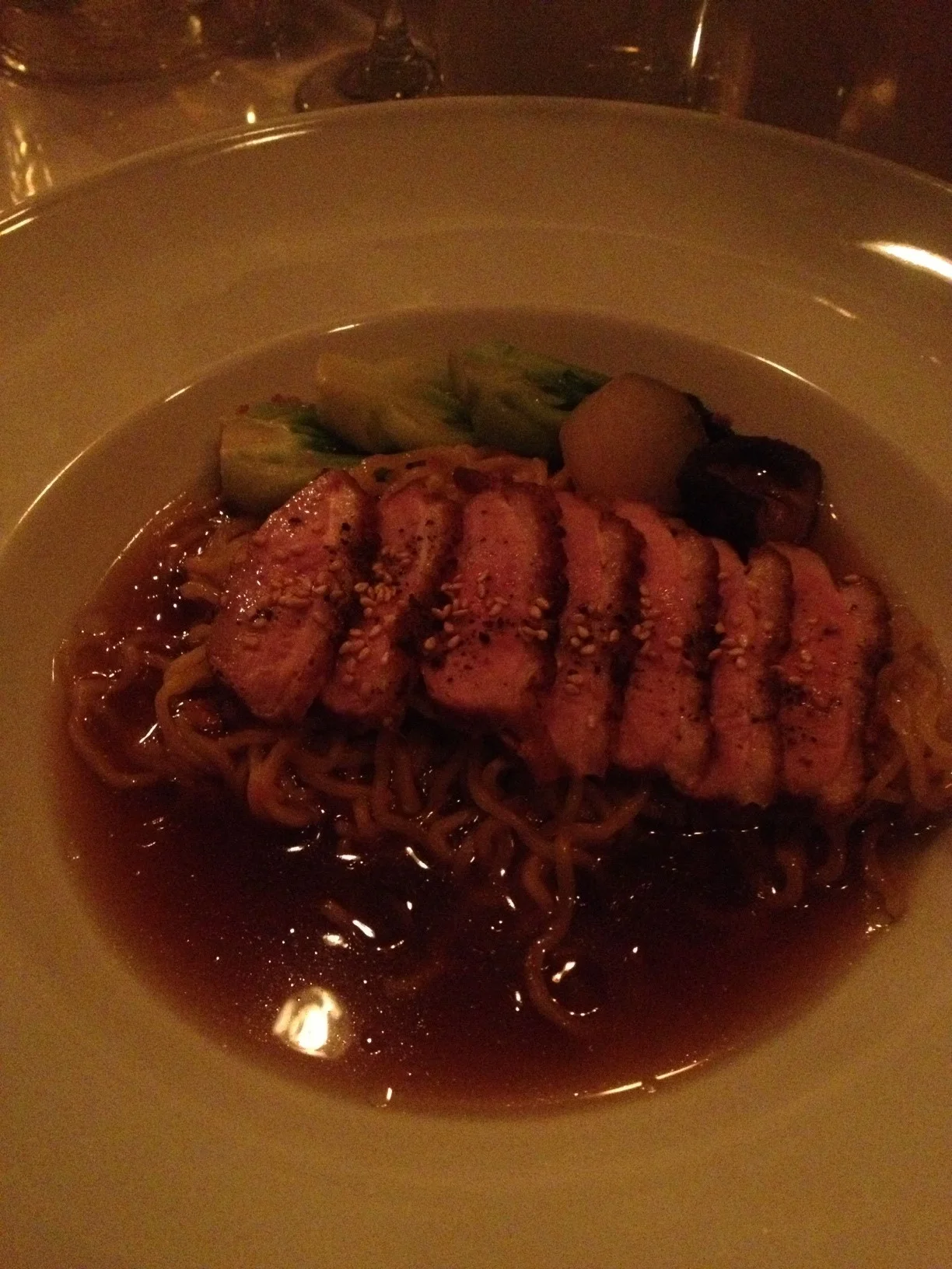 This dish was my least favorite. The raviolis were served in a sage brown butter sauce. The filling wasn't that flavorful or that plentiful - they could have been a bit more stuffed. Also, the duck confit seemed a bit overdone - I think it was potentially over fried. It was still good, but compared to all the other knock-out dishes, it didn't stand a chance.